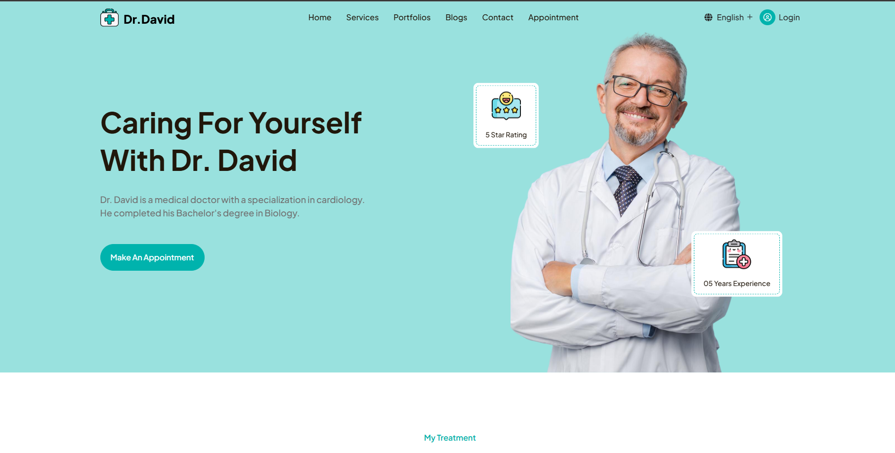 প্রথমে ক্লায়েন্ট দেখবে একটি পরিষ্কার হিরো + সার্ভিস/সাবস্পেশালিটি সারতা (এক লাইনে কি করেন)।